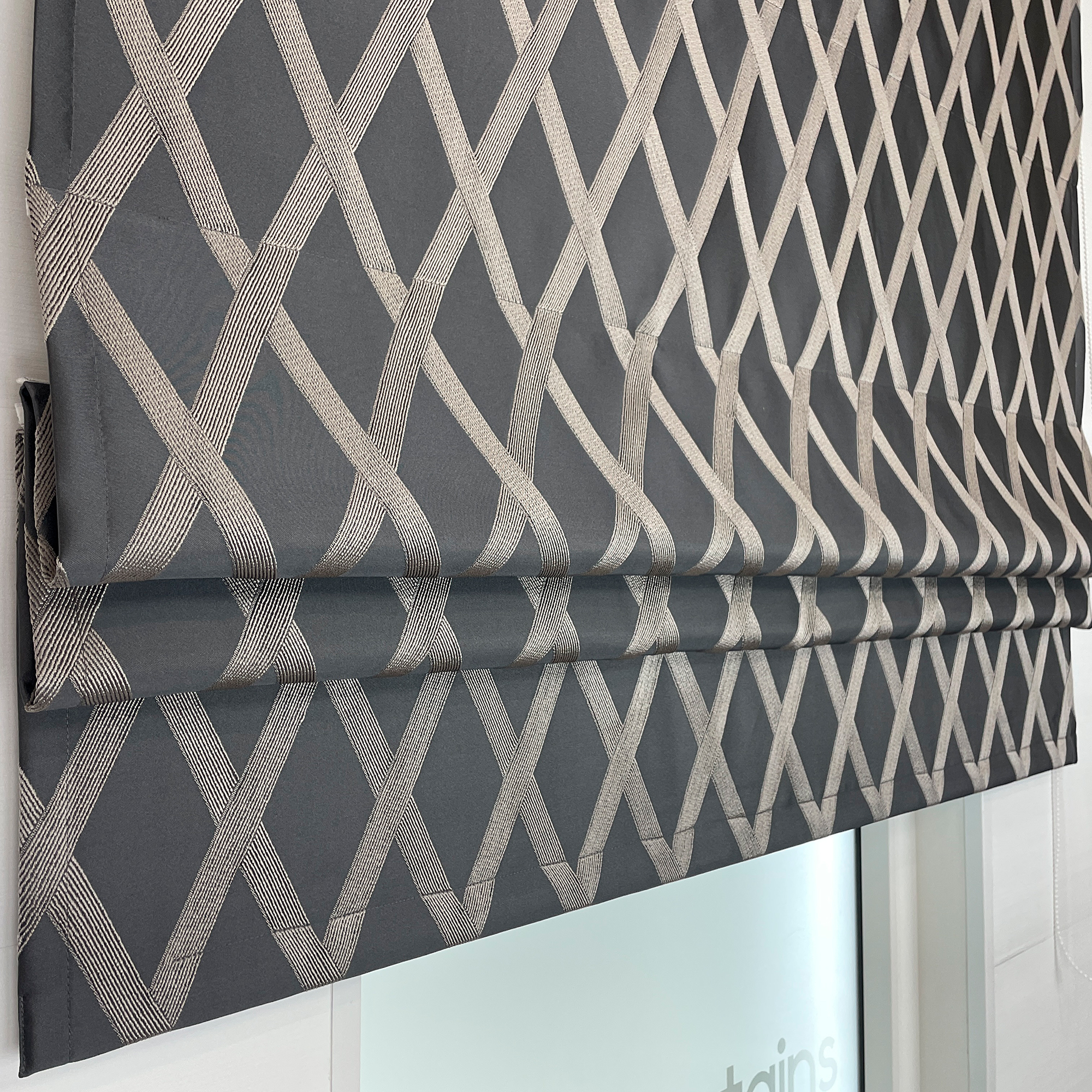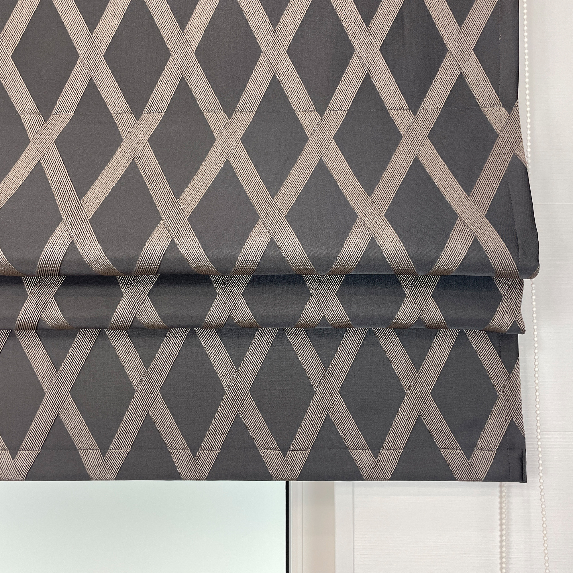Элегантная римская штора Crystal Glow выполнена из высококачественной сатиновой ткани с золотистым, объемным орнаментом. Дизайн с фактурными ромбами не только подчеркивает современный стиль, но и отлично вписывается в классические интерьеры. Тёмно-серый цвет придаёт глубину и выразительность, а также позволяет легко сочетать штору с различными цветами и текстурами, создавая уникальные комбинации в вашем интерьере.